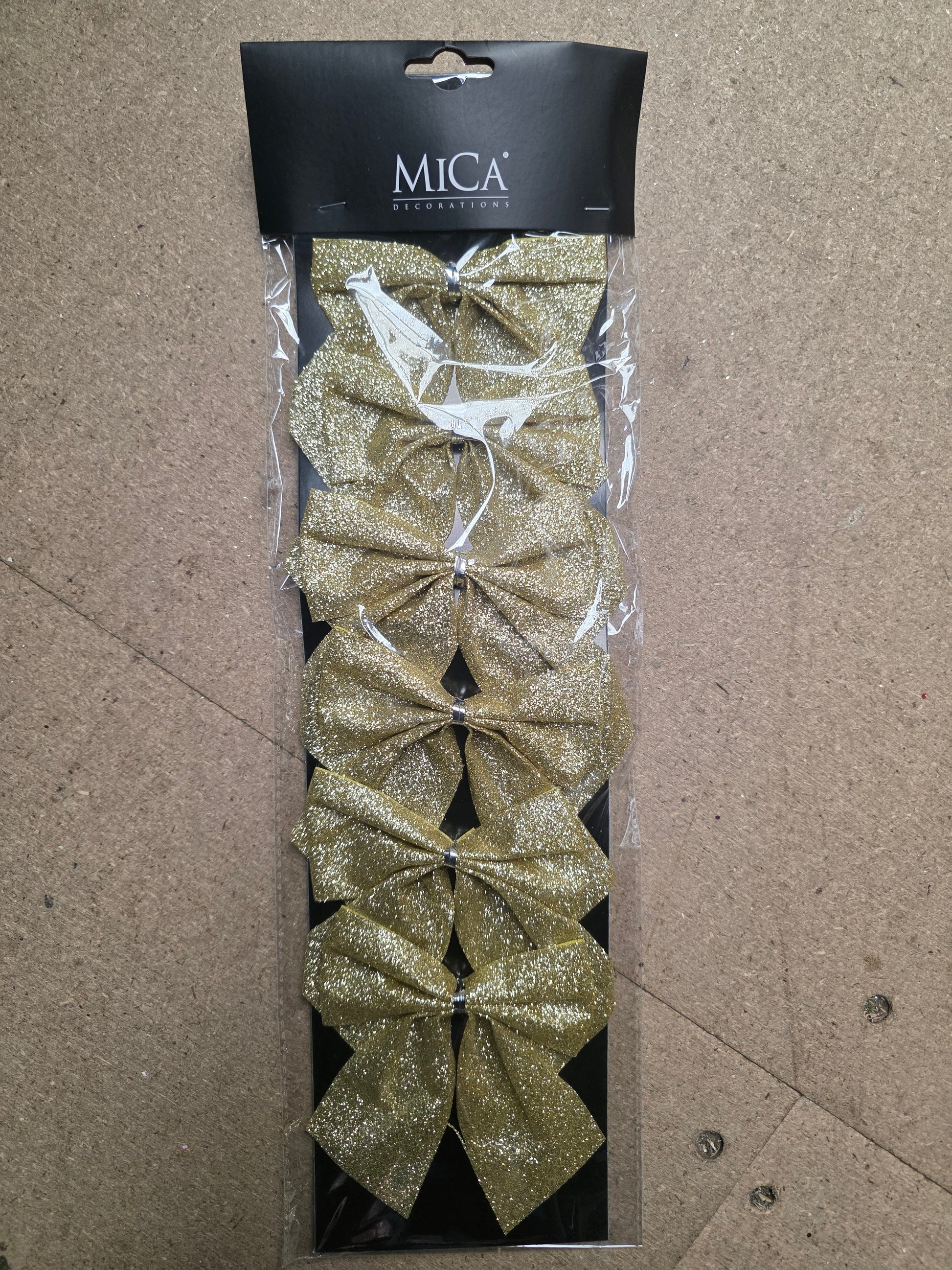 Bow Glitter Gold 10x12cm X6