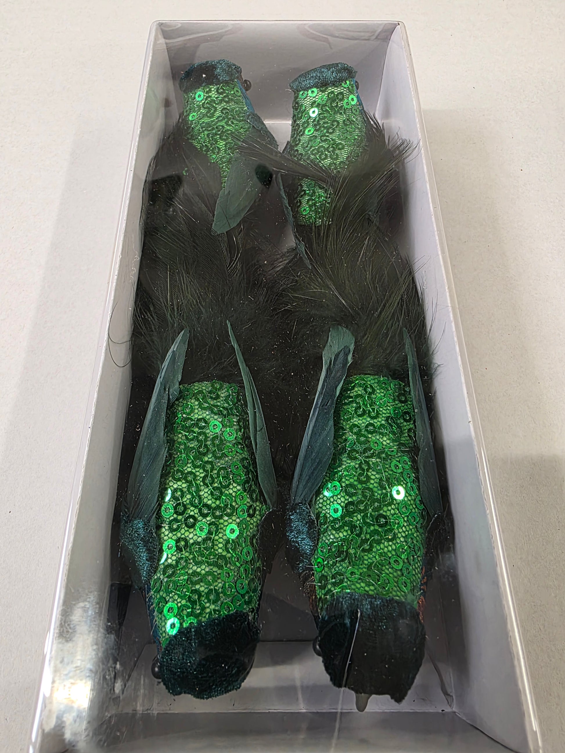 Fabric Bird Clips Green 17cm X4