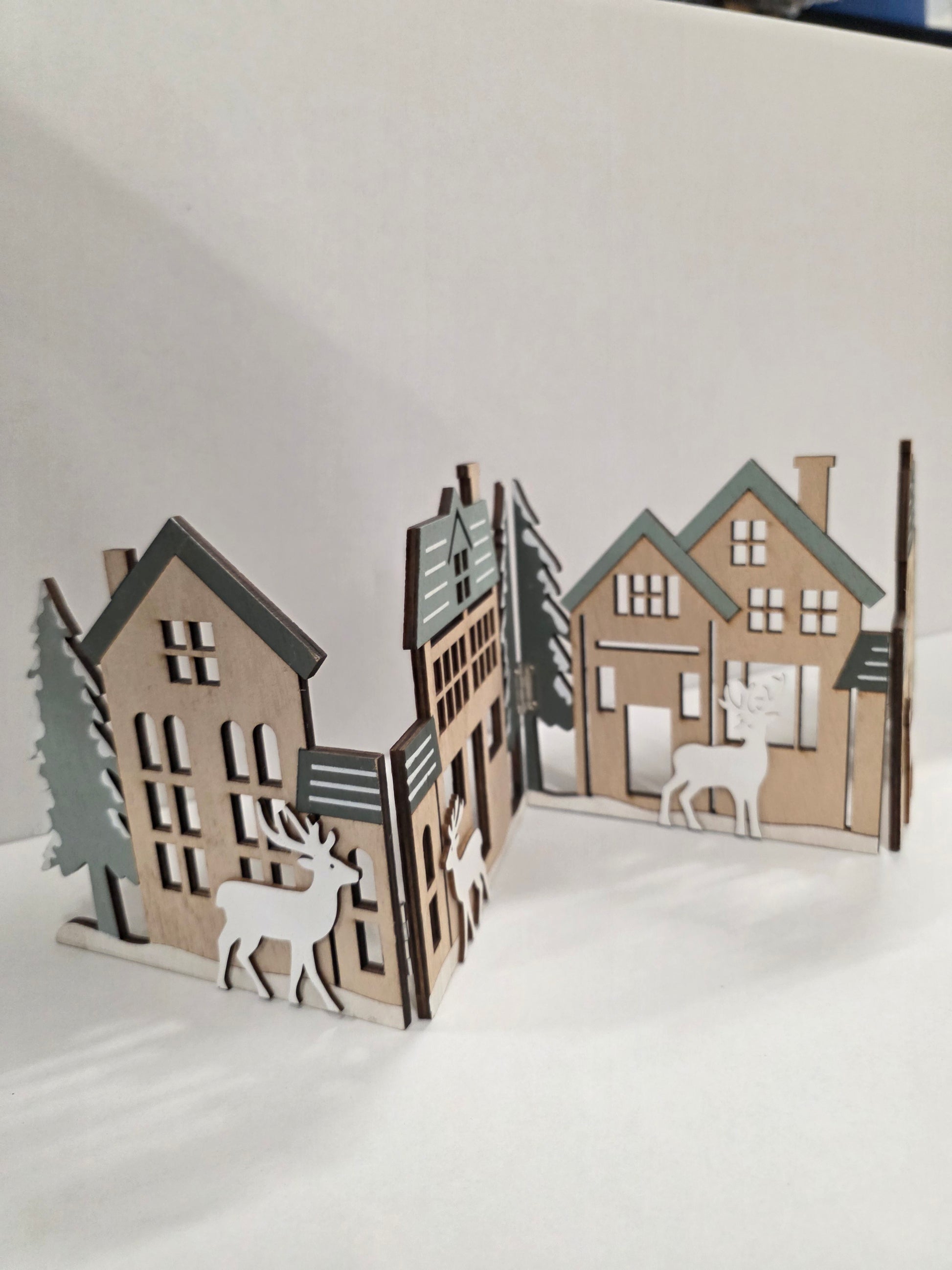 Wooden Xmas Deco Scene Sage 60x16cm