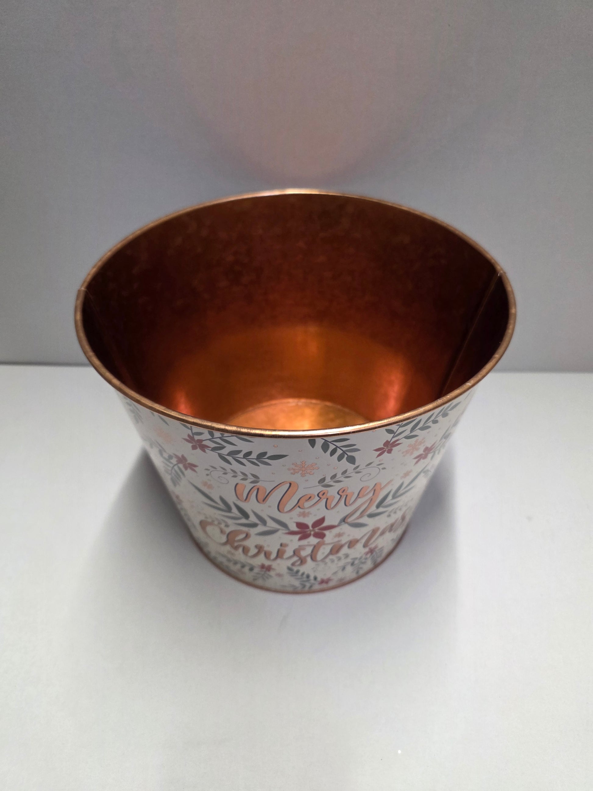 Zinc Pot Merry Xmas Leaf 22x17cm